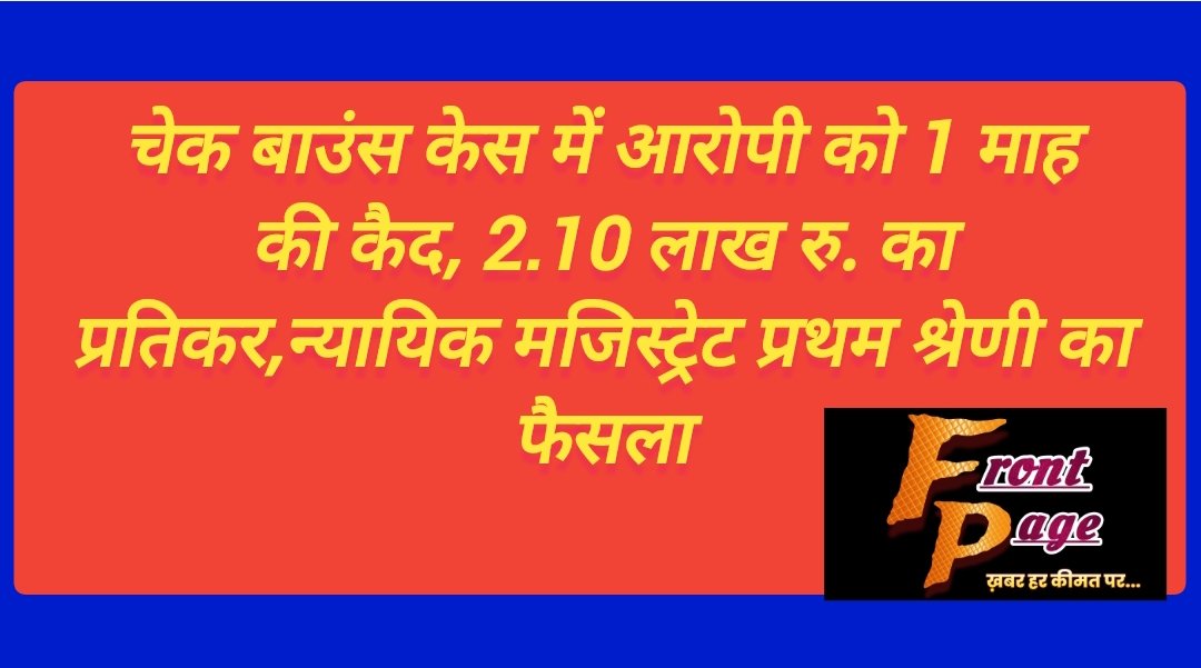 चेक बाउंस केस में आरोपी को 1 माह की कैद, 2.10 लाख रु. का प्रतिकर,न्यायिक मजिस्ट्रेट प्रथम श्रेणी का फैसला