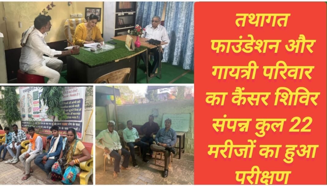 तथागत फाउंडेशन और गायत्री परिवार का कैंसर शिविर संपन्न कुल 22 मरीजों का हुआ परीक्षण