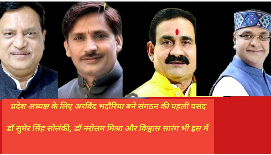 प्रदेश अध्यक्ष के लिए अरविंद भदौरिया बने संगठन की पहली पसंद डॉ सुमेर सिंह सोलंकी, डॉ नरोत्तम मिश्रा और विश्वास सारंग भी इस में