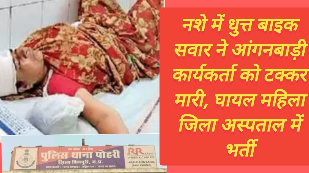 शिवपुरी……पोहरी में पुलिस थाने के सामने नशे में धुत्त बाइक सवार ने आंगनबाड़ी कार्यकर्ता में टक्कर मार दी। कार्यकर्ता मौके पर ही बेहोश हो गईं। पुलिस ने पोहरी अस्पताल में भर्ती कराया, जहां से शिवपुरी जिला अस्पताल रेफर कर दिया। कार्यकर्ता के सिर में चोट व हाथ में फ्रेक्चर आया है। पुलिस ने मामला जांच में ले लिया है।