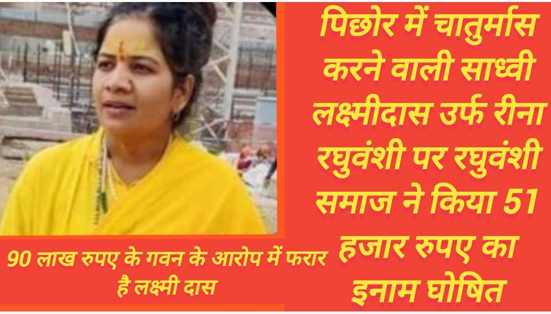 पिछोर में चातुर्मास करने वाली साध्वी लक्ष्मीदास उर्फ रीना रघुवंशी पर रघुवंशी समाज ने किया 51 हजार रुपए का इनाम घोषित