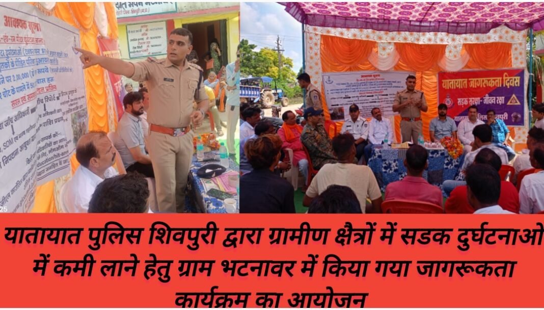 यातायात पुलिस शिवपुरी द्वारा ग्रामीण क्षैत्रों में सडक दुर्घटनाओ में कमी लाने हेतु ग्राम भटनावर में किया गया जागरूकता कार्यक्रम का आयोजन