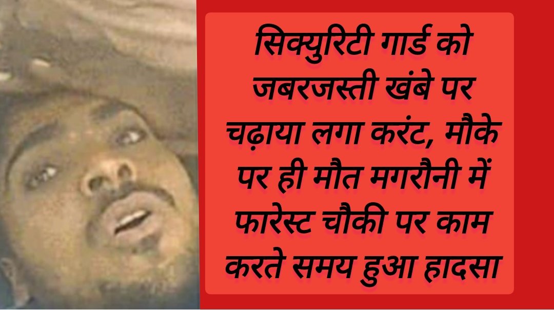 सिक्युरिटी गार्ड को जबरजस्ती खंबे पर चढ़ाया लगा करंट, मौके पर ही मौत मगरौनी में फारेस्ट चौकी पर काम करते समय हुआ हादसा