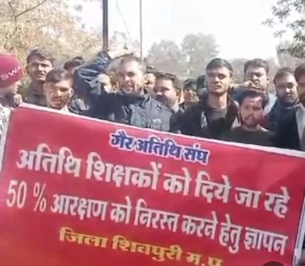 शिवपुरी…….प्रदेश सरकार ने हाल ही में शिक्षकों की भर्ती में अतिथि शिक्षकों 50 प्रतिशत आरक्षण का नियम लागू लिया हैं। शिवपुरी मुख्यालय पर आगामी शिक्षा भर्ती में अतिथि शिक्षकों 50 प्रतिशत आरक्षण संबंधी जारी राजपत्र के विरोध में डीएड और बीएड के छात्रों ने रैली निकाल कर शिक्षा मंडल के नाम कलेक्टर को एक ज्ञापन सौंपा हैं। ज्ञापन के माध्यम से शिक्षा भर्ती में अतिथि शिक्षकों 50 प्रतिशत आरक्षण को रद्द करने की मांग की गई हैं।